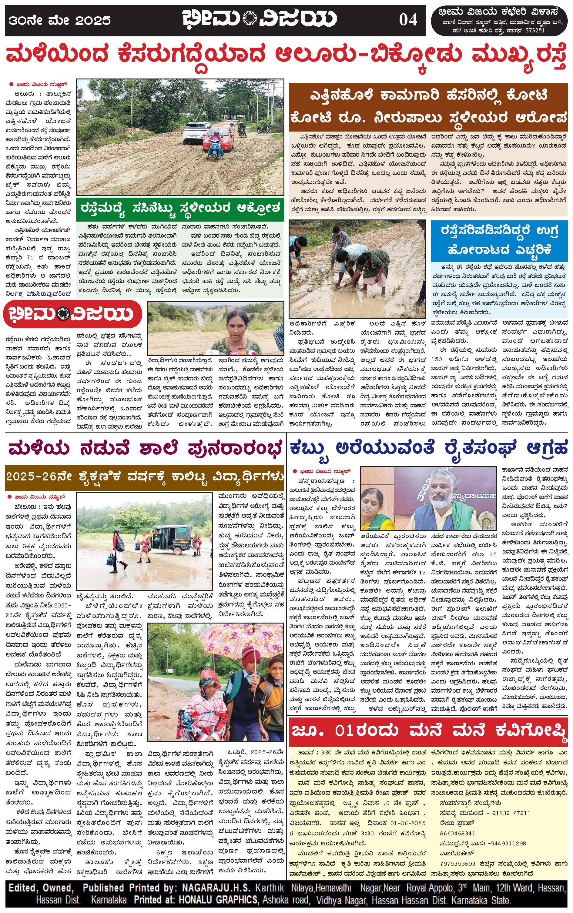 ಭೀಮ ವಿಜಯ 30 May 2025 Page: 4 May 30, 2025 << First << 4 >> Last >> Page 1Page 2Page 3Page 4 × ಭೀಮ ವಿಜಯ 30 May 2025 Page-1Page-2Page-3Page-4 << First << 4 >> Last >> Page-1Page-2Page-3Page-4 Page-4