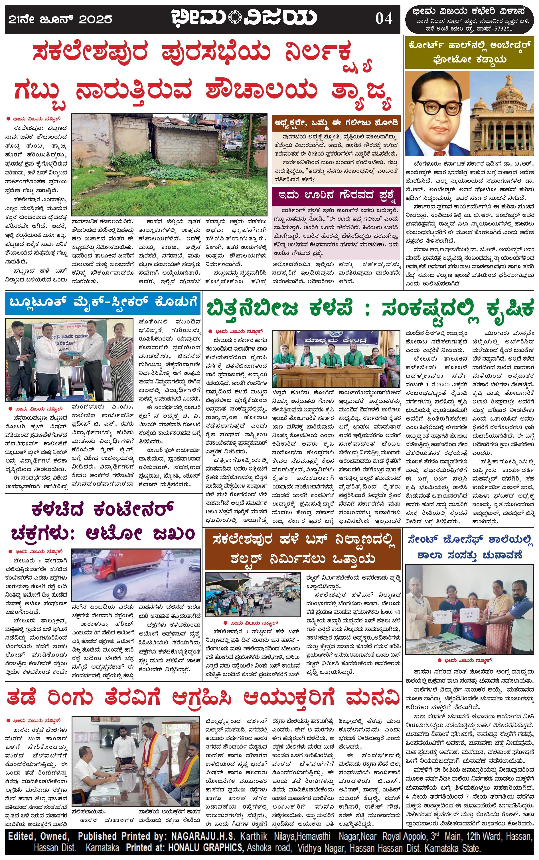 ಭೀಮ ವಿಜಯ 21 June 2025 Page: 4 June 21, 2025 << First << 4 >> Last >> Page 1Page 2Page 3Page 4 × ಭೀಮ ವಿಜಯ 21 June 2025 Page-1Page-2Page-3Page-4 << First << 4 >> Last >> Page-1Page-2Page-3Page-4 Page-4
