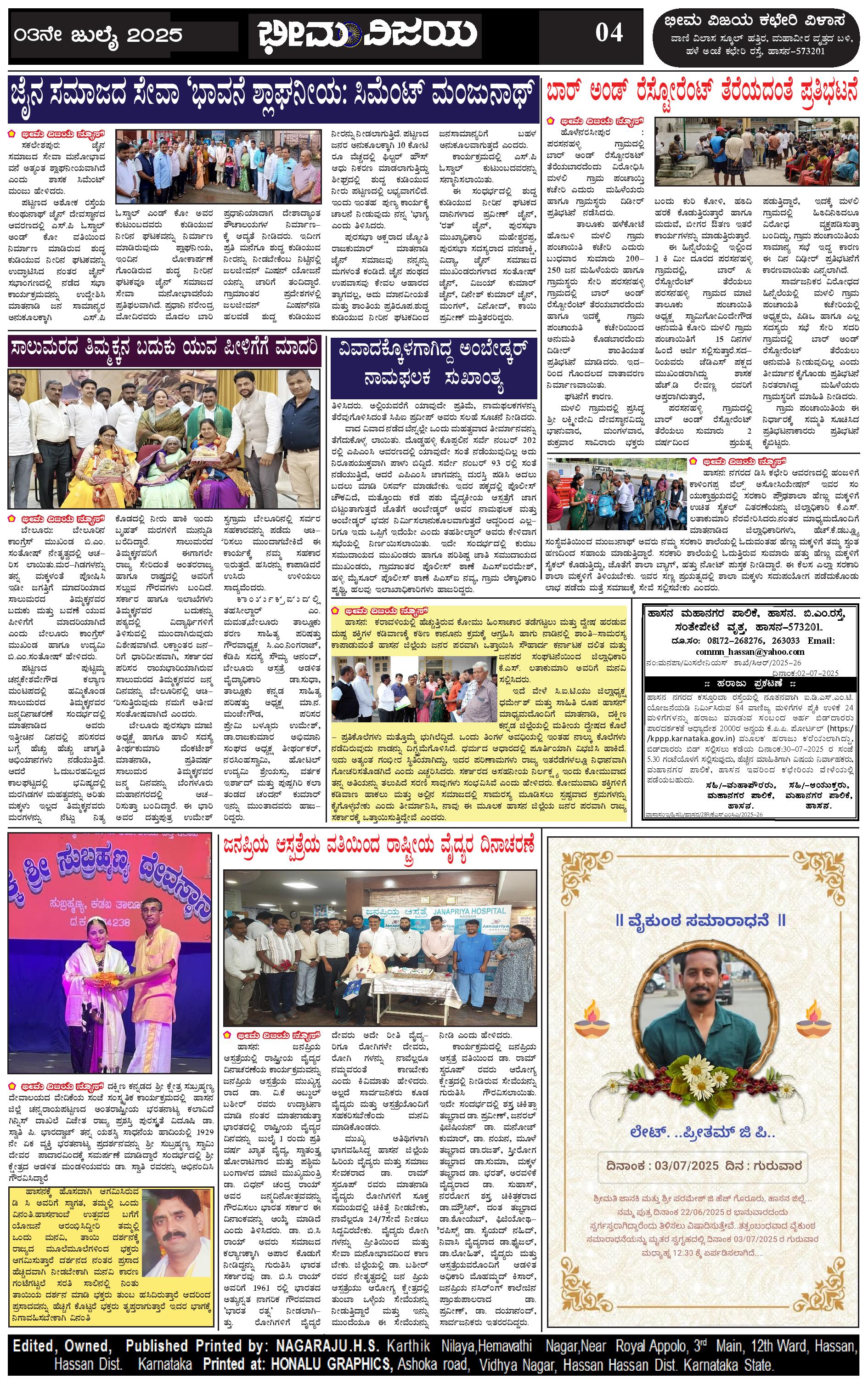 ಭೀಮ ವಿಜಯ 03 July 2025 Page: 4 July 03, 2025 << First << 4 >> Last >> Page 1Page 2Page 3Page 4 × ಭೀಮ ವಿಜಯ 03 July 2025 Page-1Page-2Page-3Page-4 << First << 4 >> Last >> Page-1Page-2Page-3Page-4 Page-4